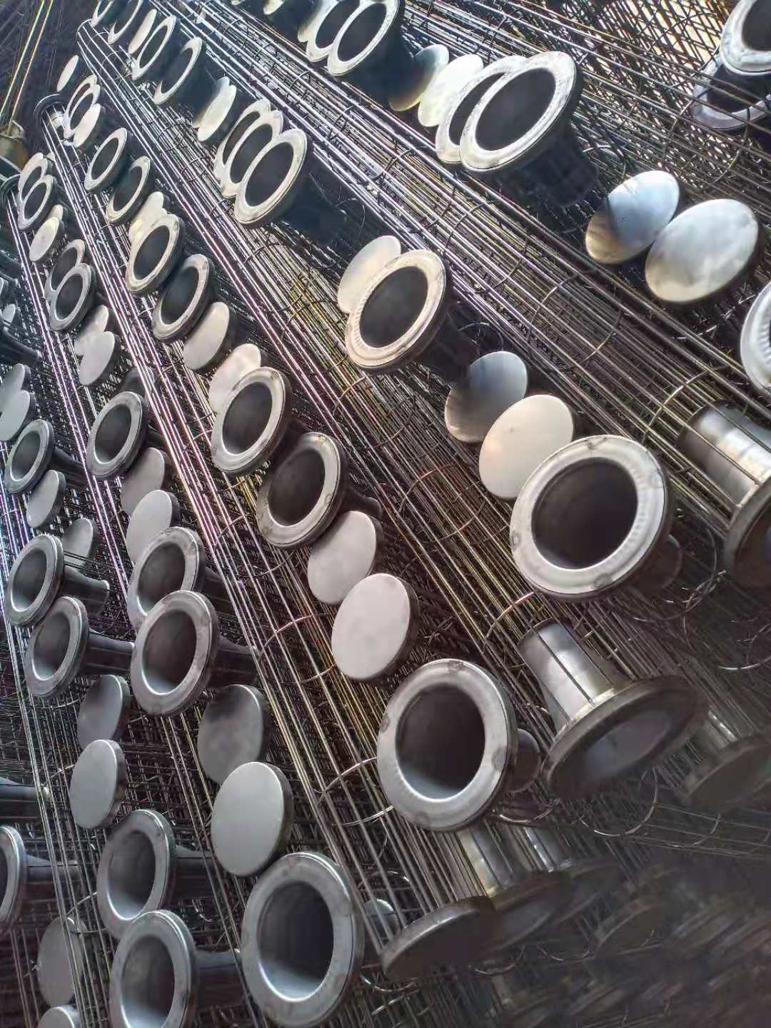 噴塑除塵骨架是采用鋼絲焊接完成后,經(jīng)過靜電噴涂設(shè)備進(jìn)行表面噴塑處理,對鋼絲起到保護(hù)的作用,使鋼絲不接觸空氣,不生銹,對有腐蝕性、酸堿性的氣體起到隔絕的作用,延長除塵骨架的使用壽命。并且也使除塵骨架表面更平整光滑,以免除塵骨架表面有毛刺對除塵布袋造成損壞。由于除塵器在運行過程中,除塵布袋由骨架支撐起來,布袋在除塵器過濾和清灰過程中不斷的貼附和膨脹,骨架會不斷的磨擦布袋,一般除塵骨架表面處理不光滑,便會磨損除塵布袋,降低濾袋的使用壽命,造成除塵效率降低和運行成本的增加,因此除塵骨架的是除塵器中的重要部件之一。