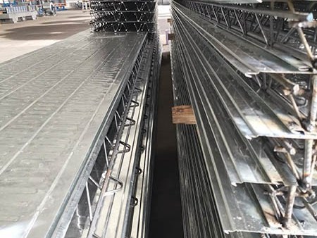 鋼筋桁架樓承板廠家,鋼筋桁架樓承板是由鋼筋、桁架、樓承板組成,在壓型樓承板的基礎上改進而來,是一種新興建筑材料。鋼筋桁架是在后臺加工場定型加工,可預制長度。采用鈑金焊接、硅烷化、純錳磷化、水洗烘干、鍍鋅等除銹防銹工藝技術,防銹膜纏繞密封。現場施工需要先將桁架樓承板擺放到正確位置,焊接支座鋼筋,后焊接栓釘,再放置現場鋼筋進行綁扎,客戶驗收后澆筑混凝土。