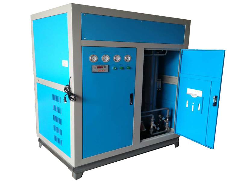 制氮機廠家批發,制氮機是根據變壓吸附原理,采用高品質的碳分子篩作為吸附劑,在額定壓力下,從空氣中制取氮氣。經過純化干燥的壓縮壓力,在吸附中進行加壓吸附、減壓脫附。由于空氣動力學效應,氧在碳分子篩微孔中擴散速率遠大于氮,氧被碳分子篩優先吸附,氮在氣相中被富集起來,形成成品氮氣。