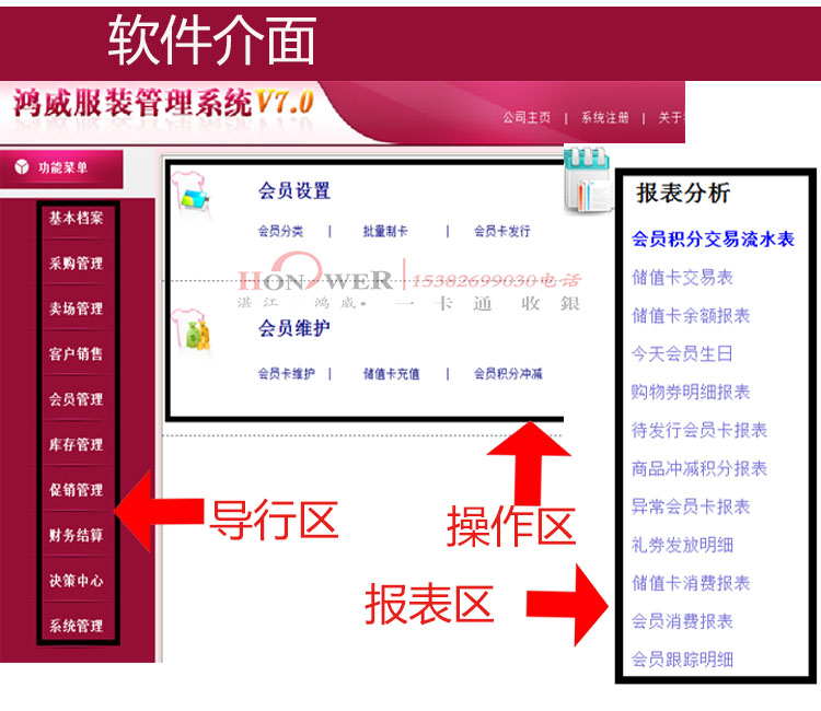 支持各種會員卡,包括:條碼卡、磁卡等;支持會員儲值、消費;支持會員積分、會員打折。