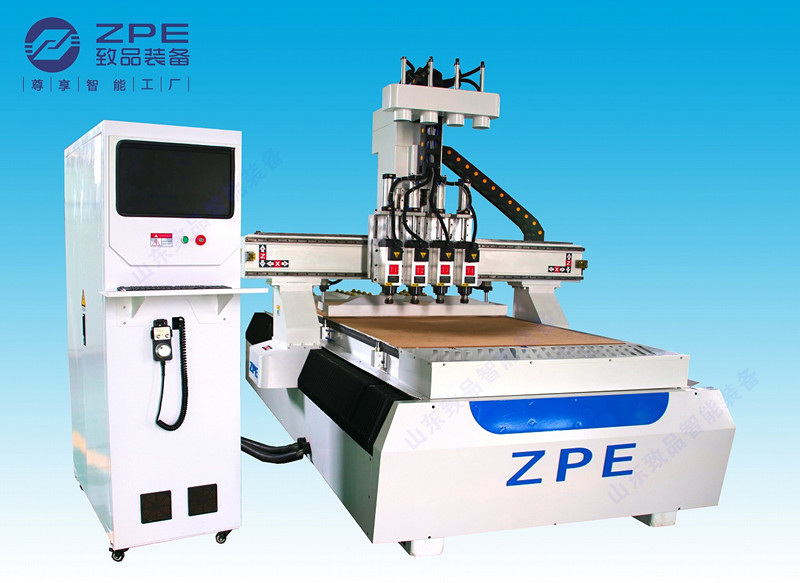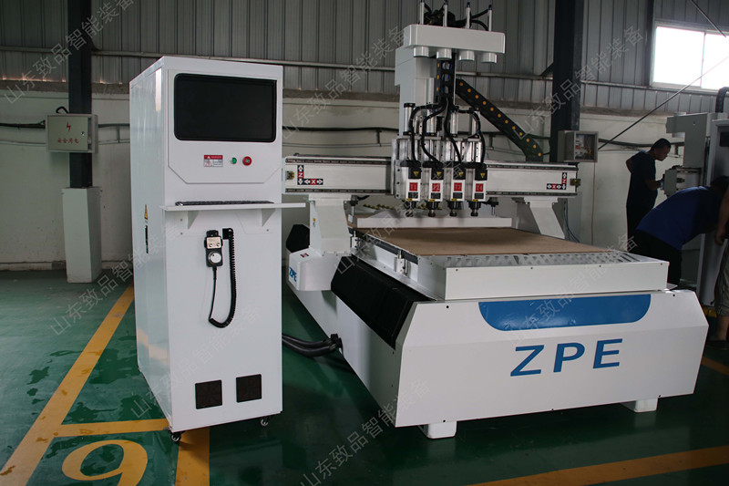 四工序開料機攜帶四把刀,做簡單的柜門雕刻,稍微復雜點的工藝(超出四把刀的)需要手動換刀,就要重新對刀。加工效率中等,當然了,每個廠家的設備配置、工藝不同,效率肯定也不一樣,致品智能裝備四工序開料機一天八小時加工量在40張板左右。四工序開料機做柜體加工。柜體加工用到的工藝有開料、拉槽、打孔。開料需要一把刀(一般為8mm),拉槽需要一把刀(根據背板厚度定),打孔一般為8mm,10mm,15mm(其他孔徑的可根據要求配刀)最小徑的刀具一定要裝上,如果大直徑刀不夠可用小直徑刀具擴孔。