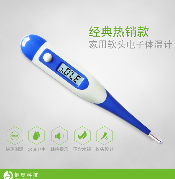 健奧廠家是專業生產數字式電子體溫計,為世界500強企業卡通電子體溫計出口品牌,十幾年的體溫計代工經驗,專業生產寶寶體溫計,女性基礎體溫計。 健奧體溫計系列,可跟據客戶要求訂做基礎電子體溫計批量定制,可貼牌、代工等。
