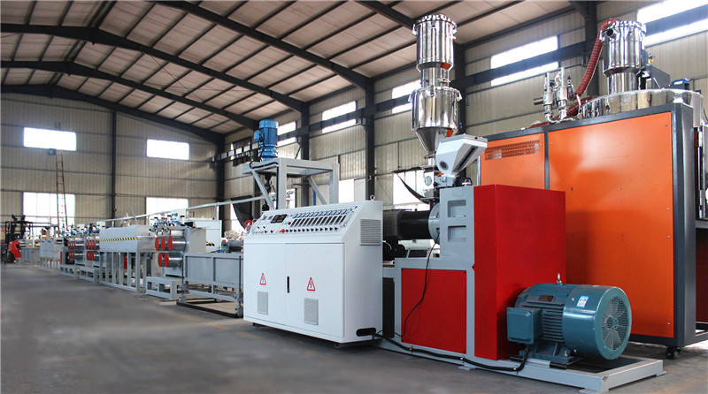 塑鋼打包帶包括除濕干燥系統、擠出機、換網器、機頭模具、烘箱、牽引機、壓花機、收卷機等等