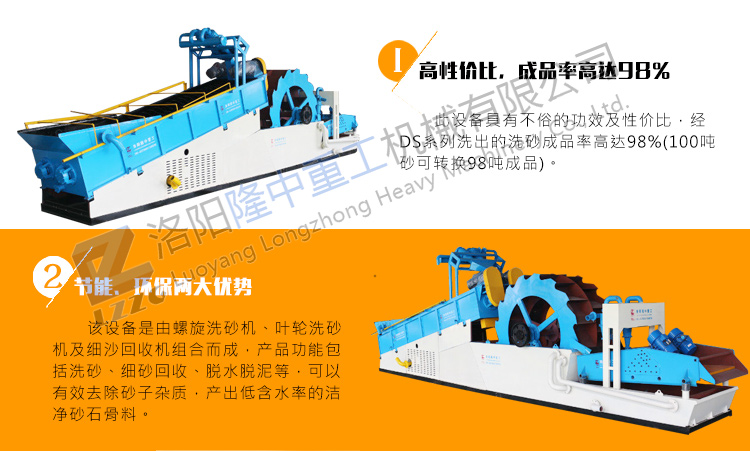它由螺旋、輪式洗砂及回收三部分組成,適用于含泥量較高,或含泥土質較粘的砂石清洗及回收作業。此設備具有很高的功效及性價比,經DS系列多功能洗砂一體機洗出的砂成品率高達98%(100噸砂可轉換98噸成品),深受廣大客戶的好評!