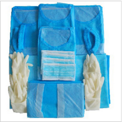 【結構及組成】:本產品基本配置由包布、剖腹單、中單、手術衣、治療巾、橡膠醫用手套、紗布塊等組成。