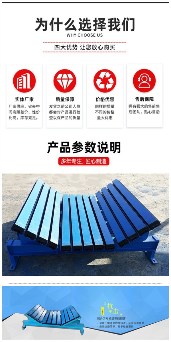 相比于傳統的緩沖托輥,緩沖床具有明顯的優勢。傳統緩沖托輥的支撐力差且不均勻,不能很好地吸收物料下落時的強大沖擊力,容易砸壞支撐輥,造成皮帶縱向撕裂隱患。而緩沖床則能夠更好地吸收沖擊力,保護皮帶不受損害。