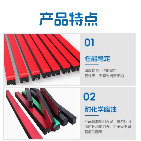 2.、緩沖條耐磨表層是由高分子聚氨酯材料制成,它具有高耐磨性、低摩擦系數和高抗沖擊韌性。